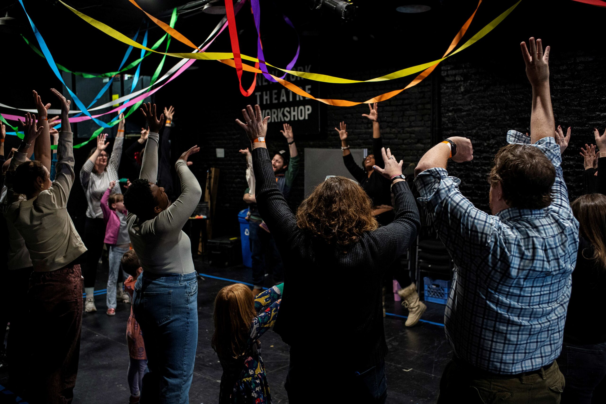 Families warming up to sing ‘Seasons of Love’ and songs from other NYTW shows in the 4th St Theatre as part of Arts & Community Day.