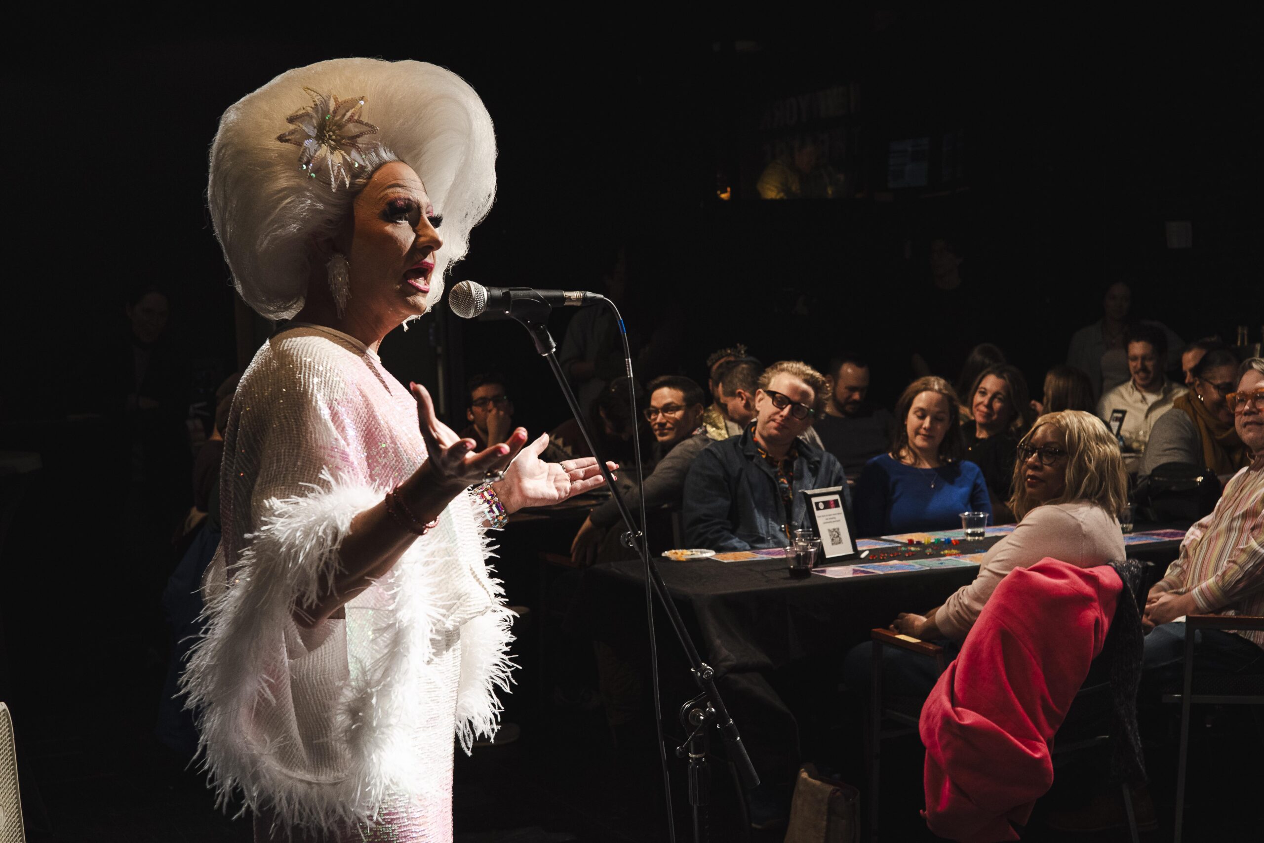 Cacophony Daniels sings for the room packed to the brim with eager bingo-players. Photo by Marcus Middleton.